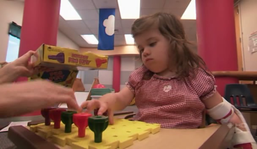 只不过,这个证明过程格外地不顺利。 请读者猜猜下图中,这个正在美国UAB康复中心治疗的小女孩受伤的是左臂还是右臂?